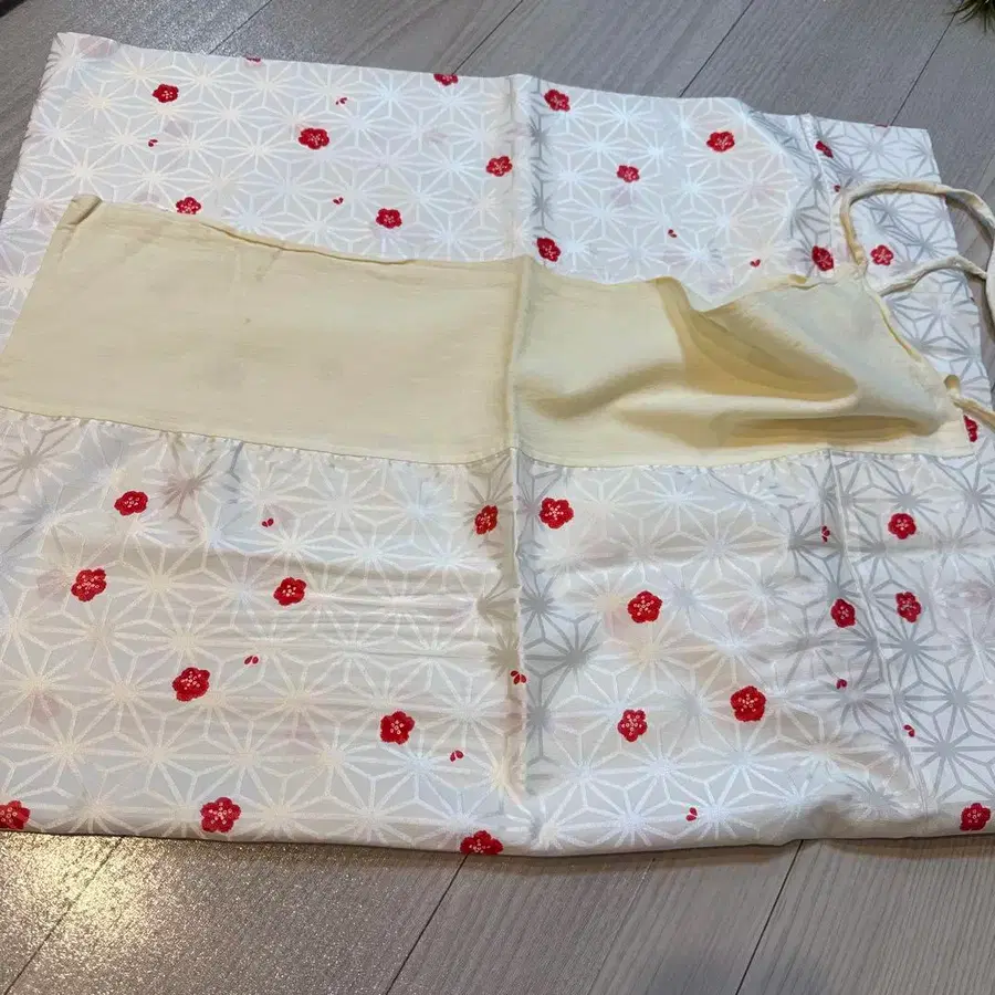 20년 이상 전에 구매하여 사용했습니다. 판매에 앞서 세탁을 마쳤습니다. 허리 부분은 면 소재, 화이트 베이스의 패턴 부분은 화학 섬유 소재입니다. 허리 부분의 면 소재 원단에 약간의 노후화 얼룩이 보입니다. 화이트 베이스의 패턴 부분은 컨디션이 좋은 편입니다. 아직도 사용 가능한 상태입니다. 지인을 통해 구매한 상품으로, 어디에서 구매한 상품인지는 알 수 없지만, 에리만(ゑり萬)의 상품이 아닐까 생각됩니다(지인이 기모노 내의 전반을 에리만에서 구매한 적이 있고, 이 패턴은 에리만 특유의 패턴이기 때문입니다). 다만, 확실한 증거는 없으므로 참고로만 부탁드립니다. 밑단에는 끈이 달려 있습니다.