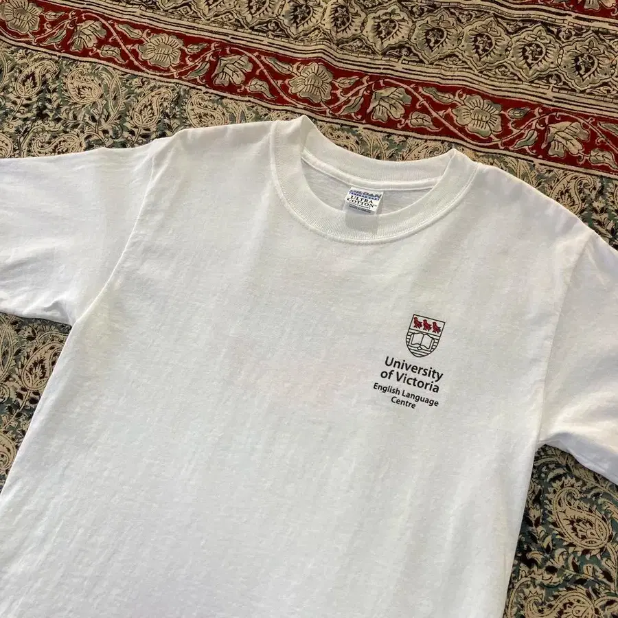 90s 칼리지 티셔츠 코튼 100% 가슴 프린트 백 프린트 샤치 빈티지