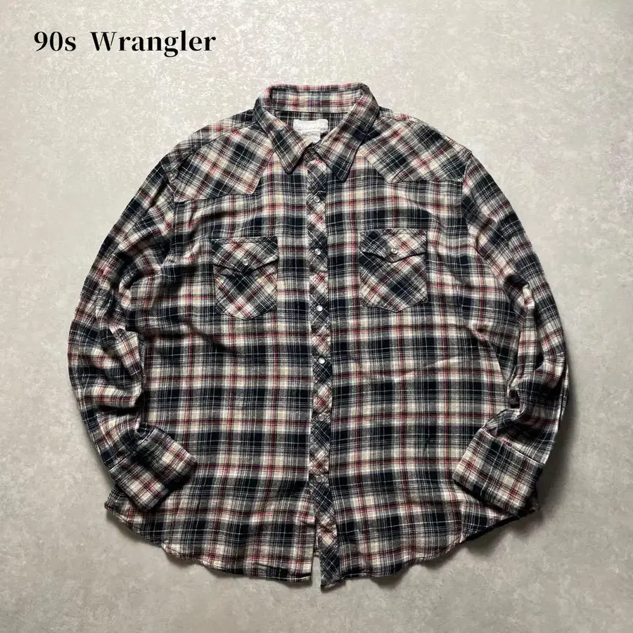 90s Wrangler 타탄 체크 웨스턴 플란넬 셔츠 긴팔 다크 그레이