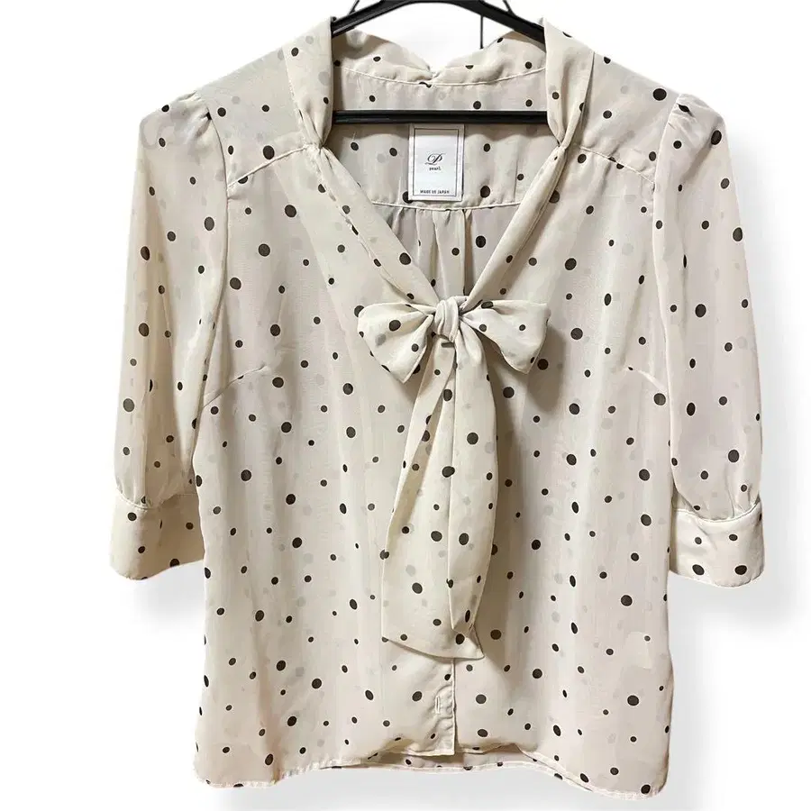 D pearl 블라우스 도트 도트 리본 포함 블라우스 시어 일본제