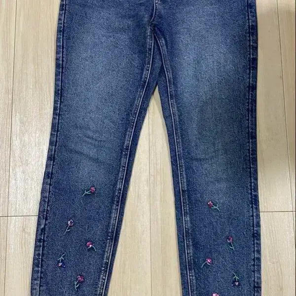 비쥬 장식 다크 데님 와이드 레그 팬츠 M 사이즈