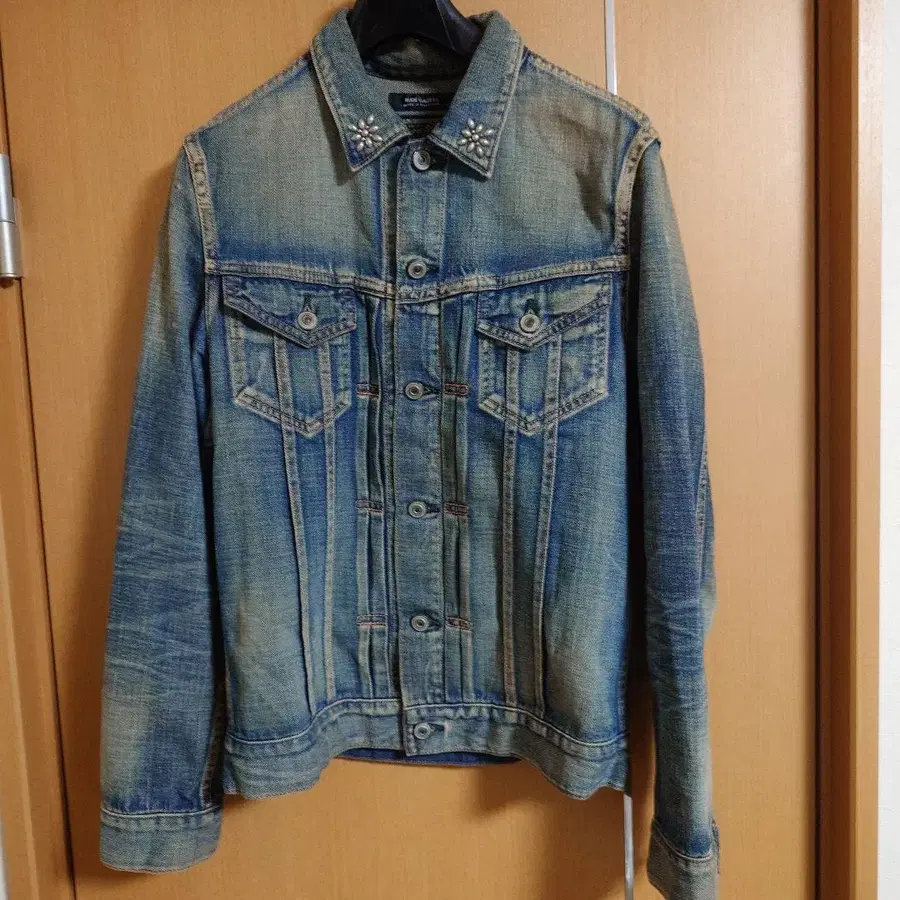 스터드가 달린 데님 자켓, 사이즈 3. - 브랜드: RUDE GALLERY - 디자인: 데님 자켓 - 사이즈: 3 - 특징: 스터드 상태는 나쁘지 않습니다. 오랫동안 옷장에 보관되어 있었으므로 예민하신 분은 구매를 삼가 주시기 바랍니다.