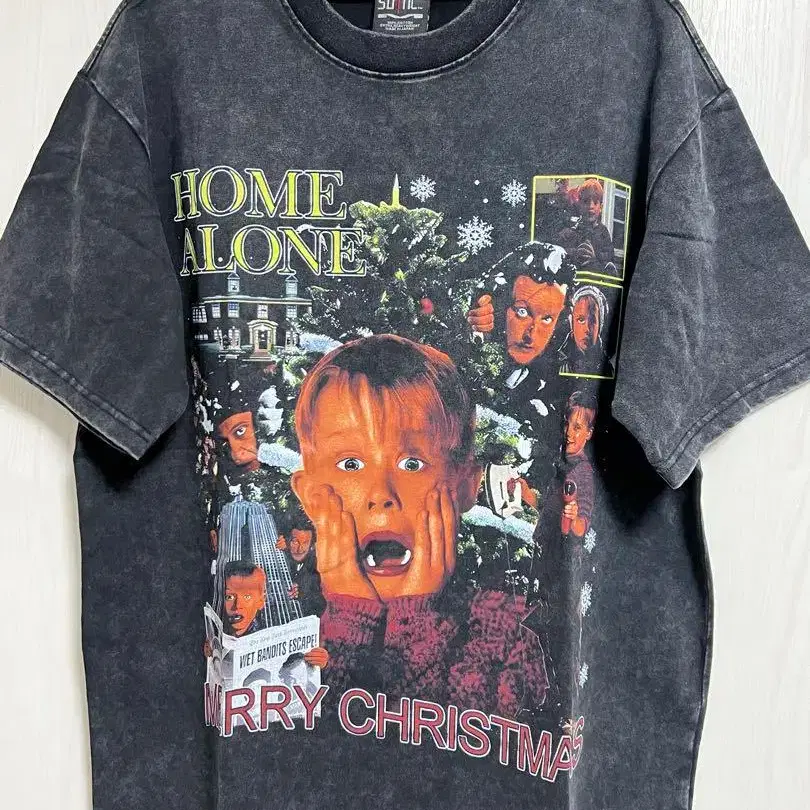 서양 영화 나 홀로 집에 빈티지 가공 T셔츠입니다. ★ 상태 ★ 미사용 새상품 구제 의류 느낌의 가공 T셔츠입니다. ★ 사이즈 ★ XL ● 기장: 74cm ● 어깨 너비: 53cm ● 소매 길이: 23cm 개인 측정으로 인해 약간의 오차는 양해 부탁드립니다. (평평하게 놓았을 때 치수 측정입니다.) ★ 소재 ★ 코튼 100% ※ 두께감 있는 튼튼한 원단입니다. 즉시 구매, 묶음 구매 가능합니다.