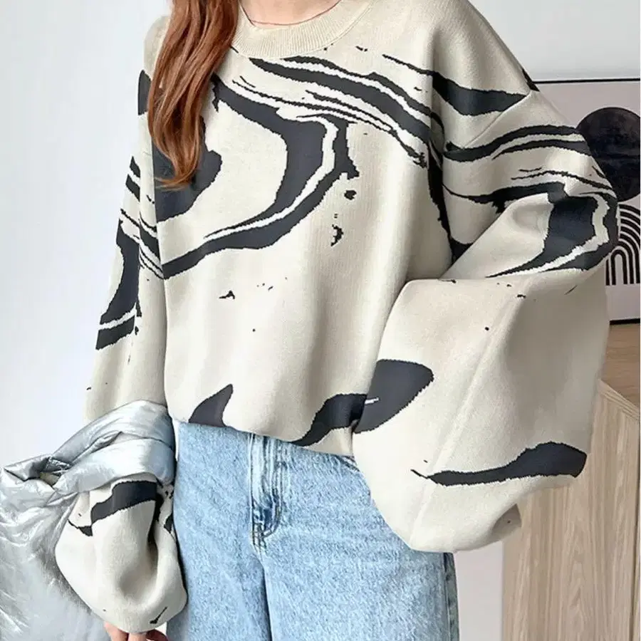 쫄깃쫄깃한 마블 패턴 니트 풀오버