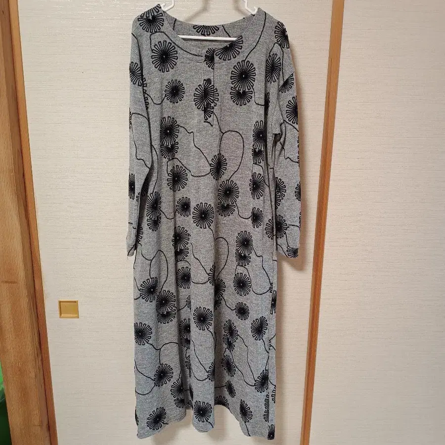 antiqua 그레이 꽃무늬 롱 원피스 긴팔