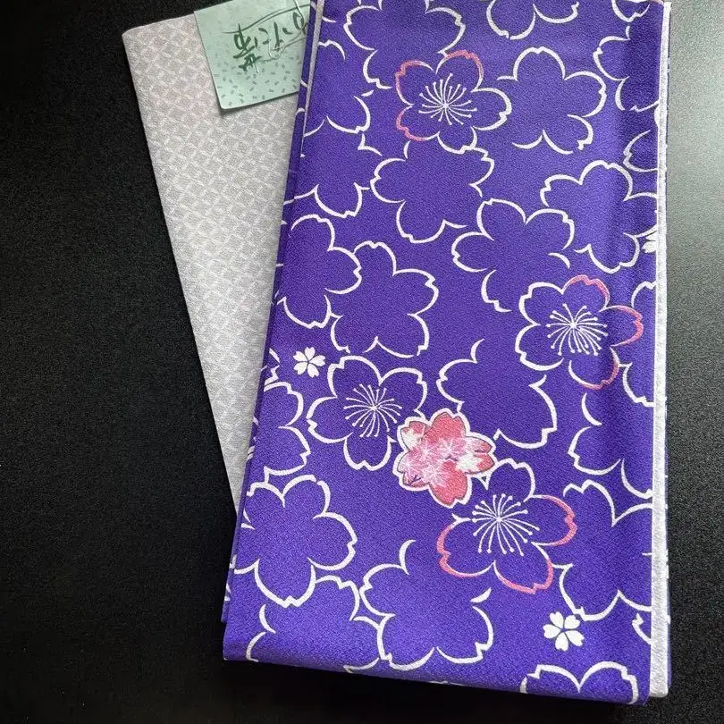 유카타 오비 보라색 꽃무늬 폴리에스테르 오비 미사용품