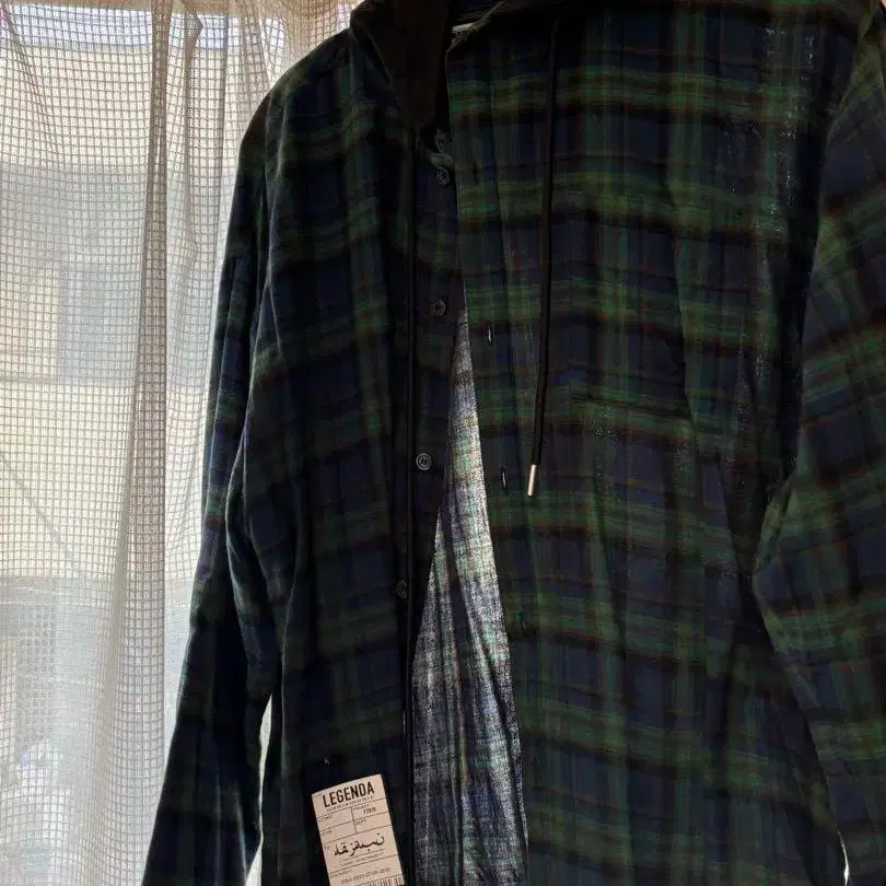 후드가 부착된 녹색과 파란색 체크 무늬 플란넬 셔츠로, 가슴 포켓이 있어 실용적입니다. - 색상: 녹색과 파란색 체크 무늬 - 소재: 불명, 플란넬 셔츠의 특징 있음 - 디자인: 후드가 부착된 긴팔 셔츠 - 택: LEGENDA 택 포함 - 포켓: 가슴 포켓 있음 방문해 주셔서 감사합니다.