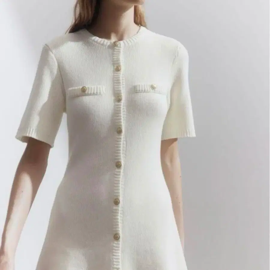 H&M 프론트 버튼 리브 니트 원피스 사이즈: S 택은 잘라냈지만 미사용 상품입니다. 즉시 구매 가능◎ h&m 에이치앤엠 원피스 니트 원피스 골드 버튼 리브 니트