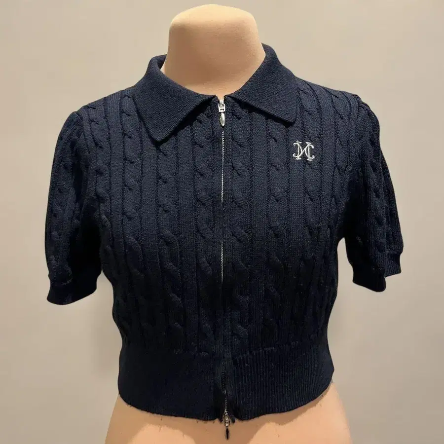 NICE CLAUP 네이비 케이블 니트 가디건 반팔