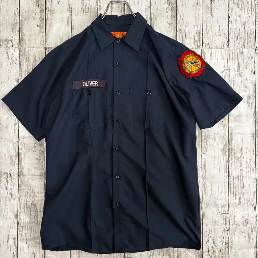자동 번역되었어요. 원문보기US 구제 의류 RED KAP 레드캡 크라프트힐즈 칼리지 소방학교 와펜 워크 셔츠 반팔 M 사이즈