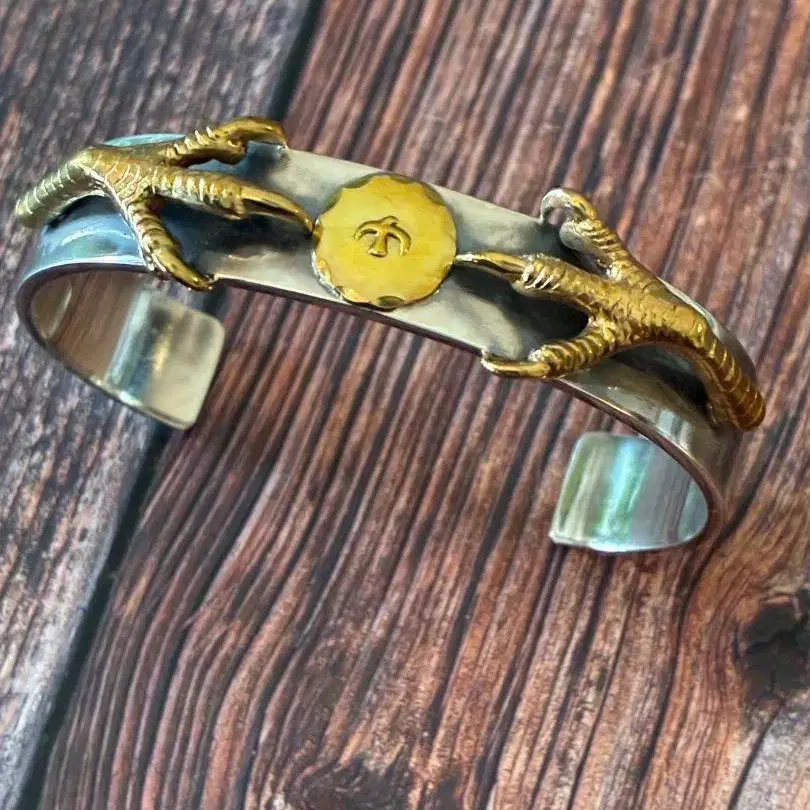 고로즈 M 사이즈 금 손톱 메탈이 달린 플랫 뱅글 goro's