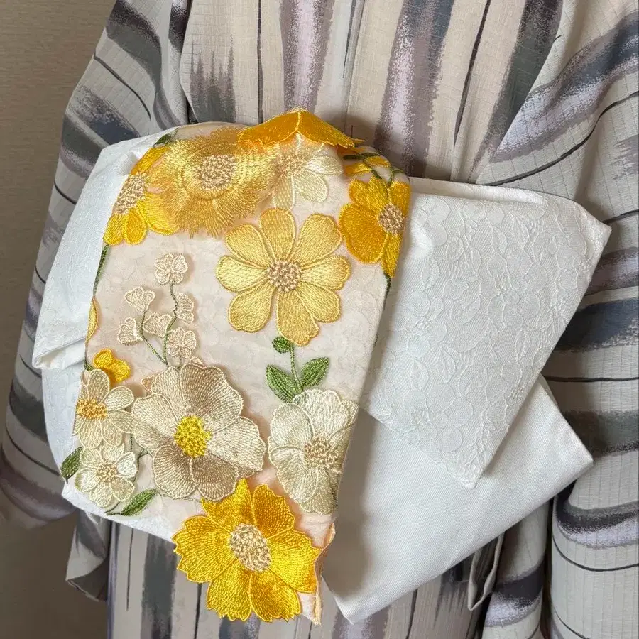 레이스 반폭 오비 3D 플라워 모티브 옐로우 컬러