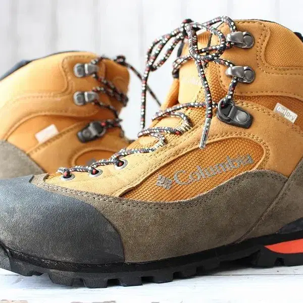 약 10회 정도 사용했으며, 사용에 따른 스크래치, 얼룩, 사용감이 있지만 큰 데미지나 파손 등은 없으므로 문제없이 사용하실 수 있습니다. 상품 설명 【OUTDRY】구조・・・방수 멤브레인을 어퍼 안쪽에 라미네이티드. 비나 눈을 최외층에서 완벽하게 차단합니다. 【MEGAGRIP】밑창・・・말할 필요도 없는 비브람 사의 고성능 밑창으로, 모든 환경에서 높은 그립력을 발휘합니다. 그 외에도, 탑에서 세 번째 레이스 구멍으로 신발 끈을 고정할 수 있고, 발을 넣는 부분 뒷면의 스트레치 가제트가 자갈이 들어가는 것을 방지하는 등, 가혹한 환경에서의 사용을 전제로 한 기능이 가득합니다.