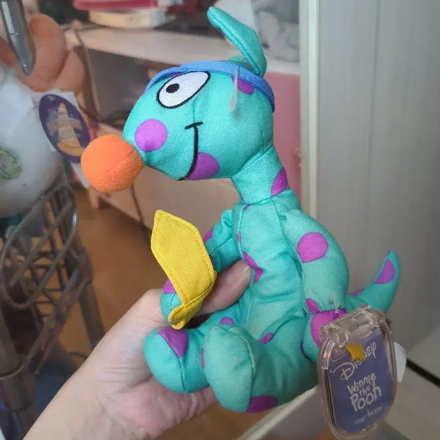 디즈니의 청록색 봉제 인형으로, 오렌지색 코와 보라색 물방울 패턴이 특징입니다. - 색상: 청록색, 보라색 물방울 패턴 - 특징: 오렌지색 코, 노란색 손에 든 아이템 - 캐릭터: 디즈니 캐릭터 - 사이즈: 손에 들 수 있는 사이즈 - 용도: 봉제 인형, 컬렉션용 방문해 주셔서 감사합니다.
