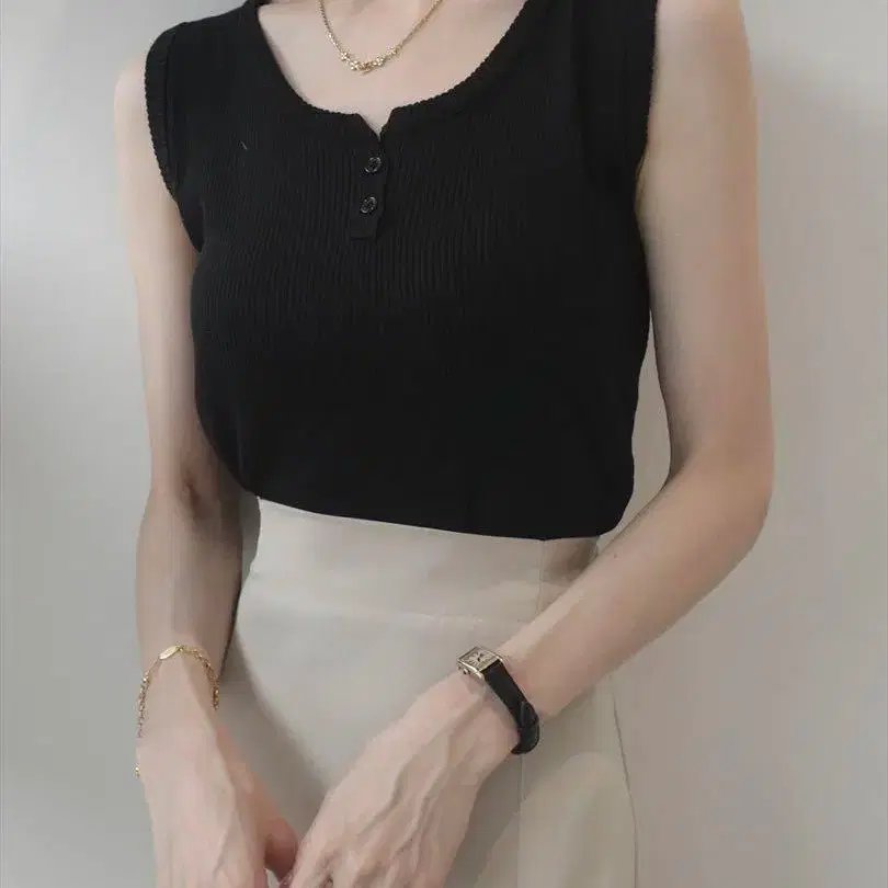 [ SALE ] amel 버튼 넥 립 탱크 탑