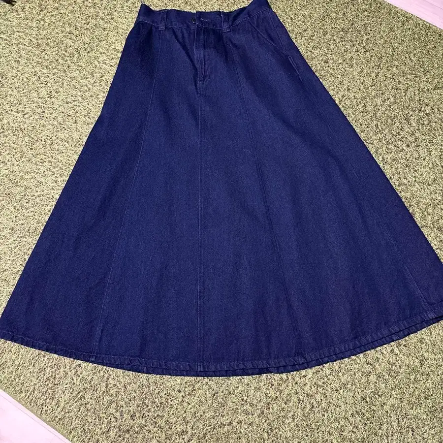 MUJI 다크 네이비 데님 플레어 롱 스커트