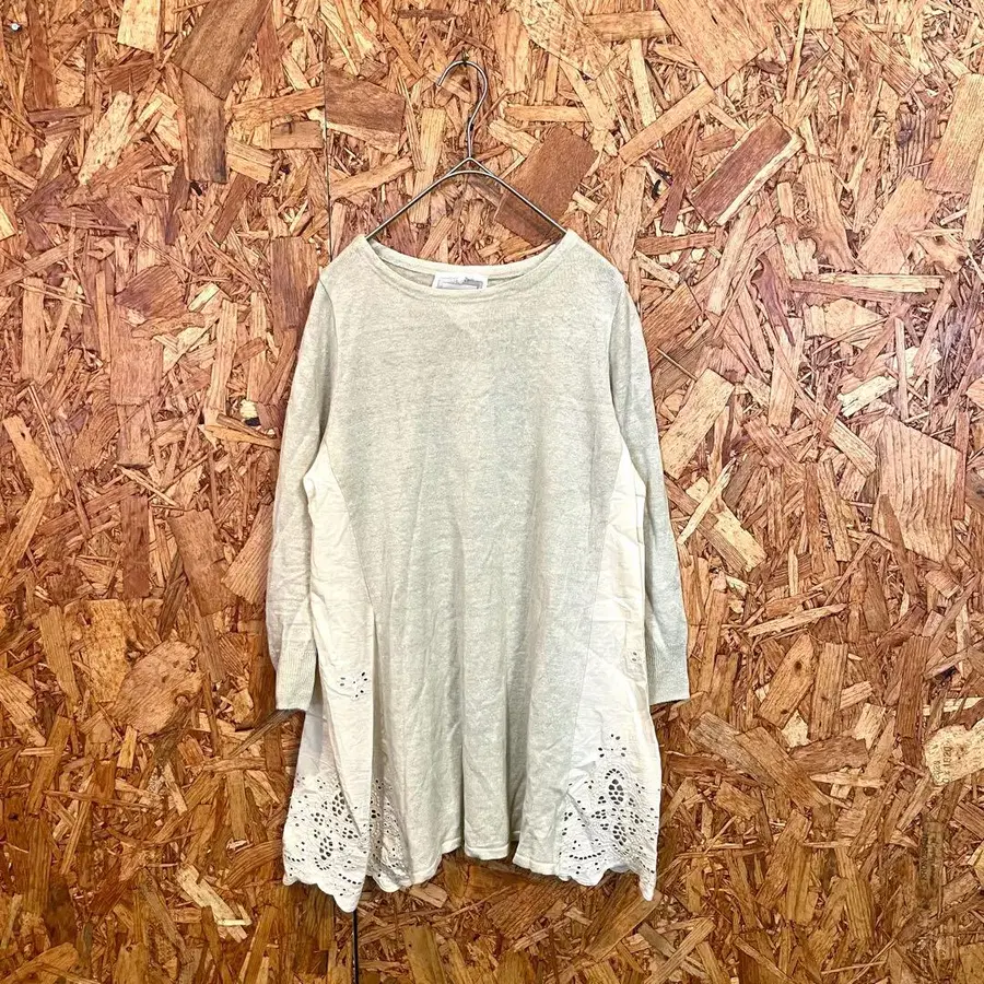 [ 새상품급 ] 7부 소매 밑단 레이스 튜닉/스모크 네이비 컬러