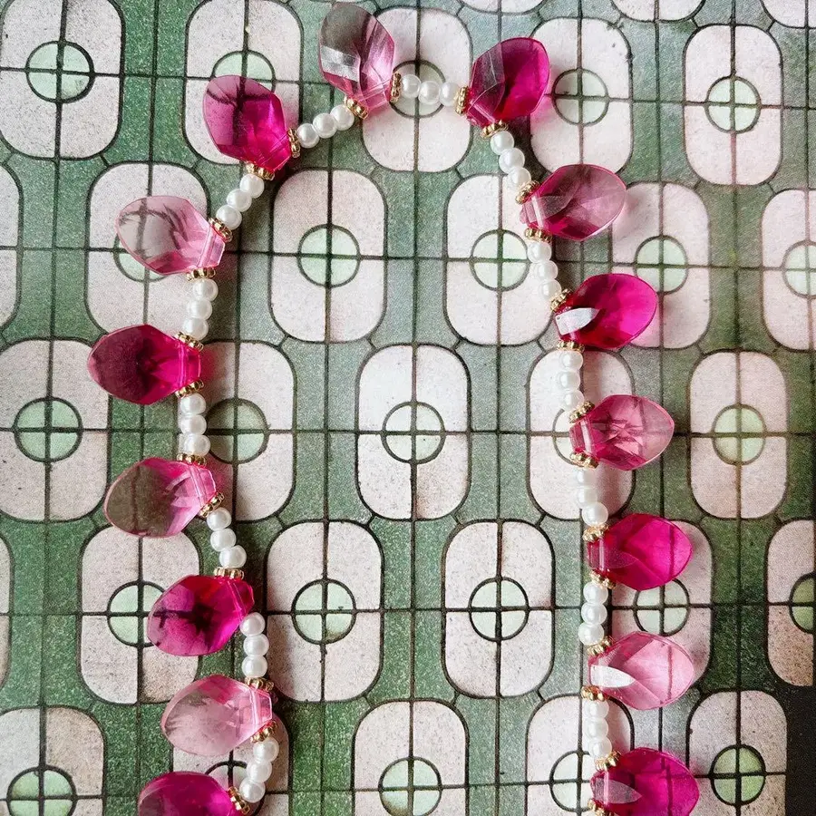 소재: 아크릴. 빨간색과 핑크 비즈는 60-70년대 경의 비즈이므로 자세한 내용은 알 수 없지만 아마 아크릴이라고 생각합니다.