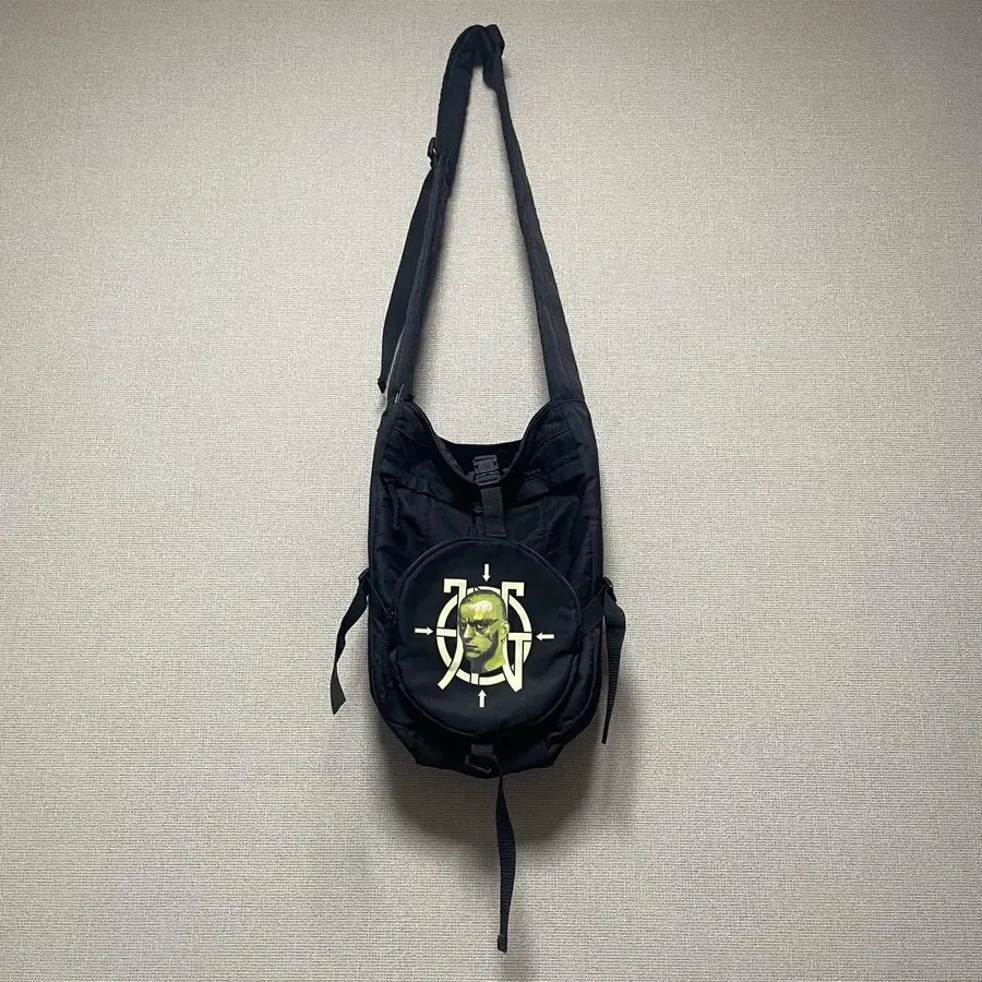 한쪽 숄더 부분에 올풀림이 있어 저렴한 핀으로 고정해서 사용했습니다. 그래픽 프린트가 특징인 블랙 숄더백. - 컬러: 블랙 - 디자인: 그래픽 프린트 - 스타일: 숄더백 - 소재: 나일론 - 포켓: 외부 포켓 방문해 주셔서 감사합니다.