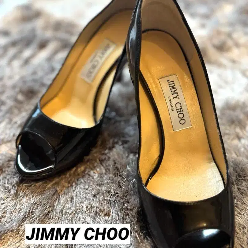 JIMMY CHOO 블랙 하이힐 오픈토 에나멜 38