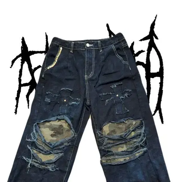 y2k 재구축 그런지 패치워크 데님 팬츠