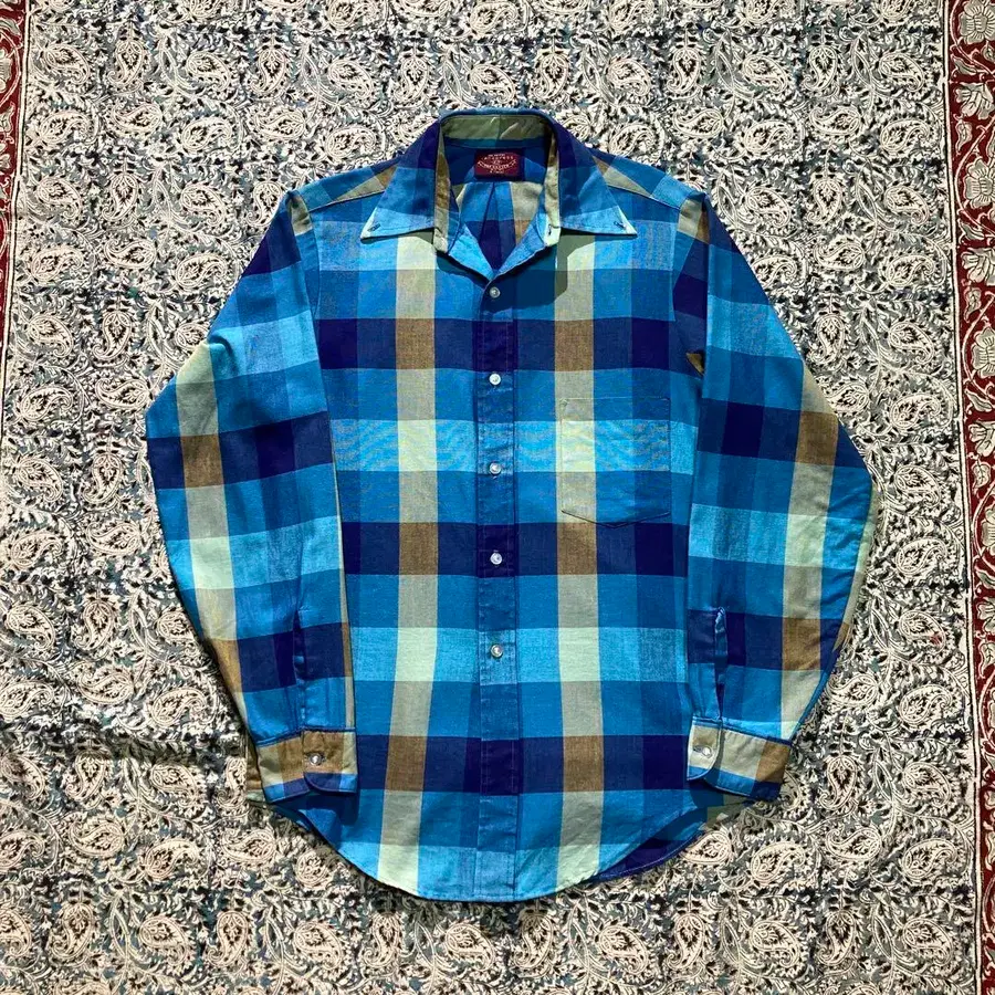 60년대 Van Heusen 코튼 100% 체크 셔츠 빈티지