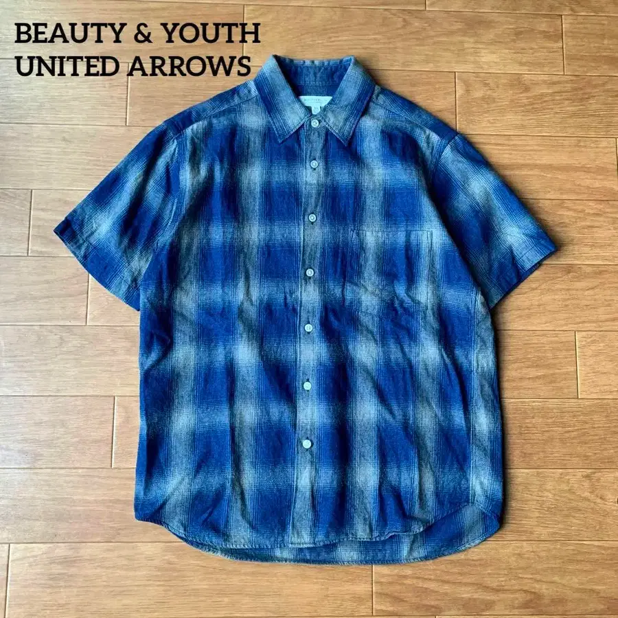 B&Y 유나이티드 애로우즈 인디고 염색 옴브레 체크 반팔 셔츠