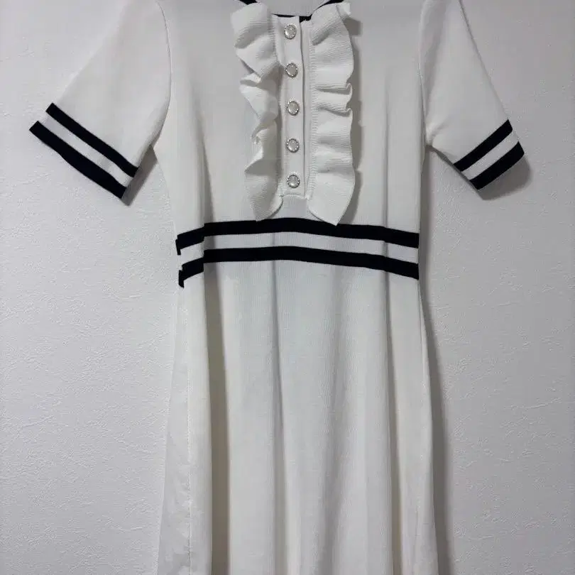 화이트 프릴 원피스 반팔 무릎 기장