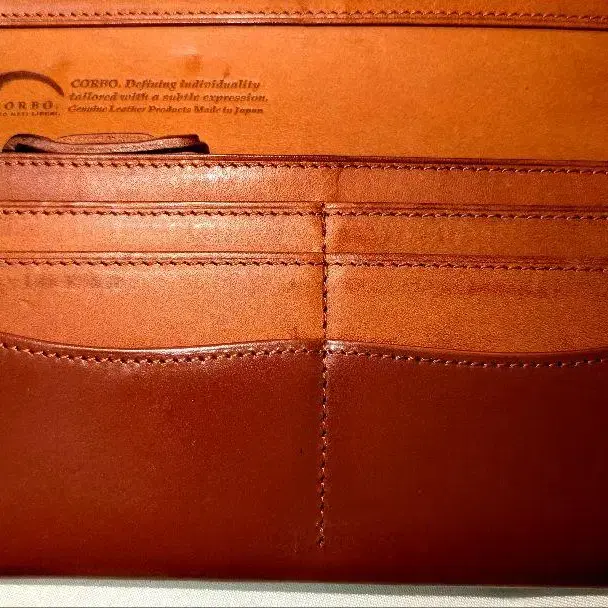 동전 지갑이 없는 심플한 사양이지만, 바닥이 넓은 지갑 부분과 카드 수납 포켓이 10개 있어 사용하기 편리한 구조로 되어 있습니다. 브라이들 가죽을 사용한 고급스러운 외관은 성숙한 분위기를 자아냅니다. 사용할수록 가죽의 탄력과 볼륨이 안정되어 수트 주머니에도 부드럽게 들어갑니다.