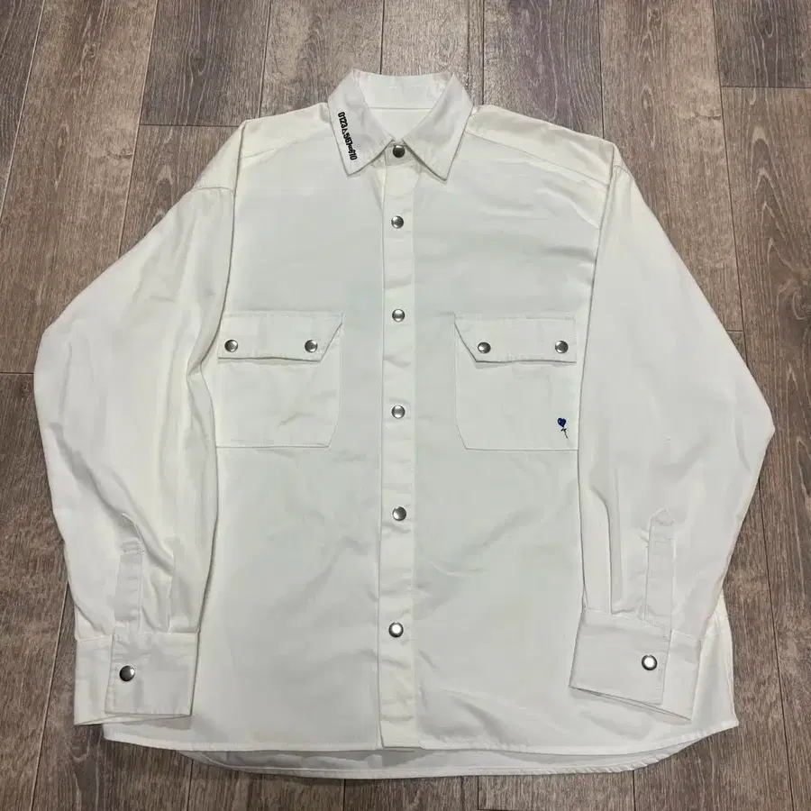 인플루언서 NIHIL 씨의 오리지널 브랜드 The law of attraction의 셔츠 아우터입니다. 사이즈감은 꽤 큽니다. 개봉은 했지만, 입어본 것만 있고 한 번도 사용하지 않았습니다. 다만 오른쪽 소매 뒷면에 얼룩이 있습니다. 포켓이 있는 화이트 셔츠로, 뒷면에 TLOA 로고와 파란색 하트 자수가 특징입니다. 사이즈: M