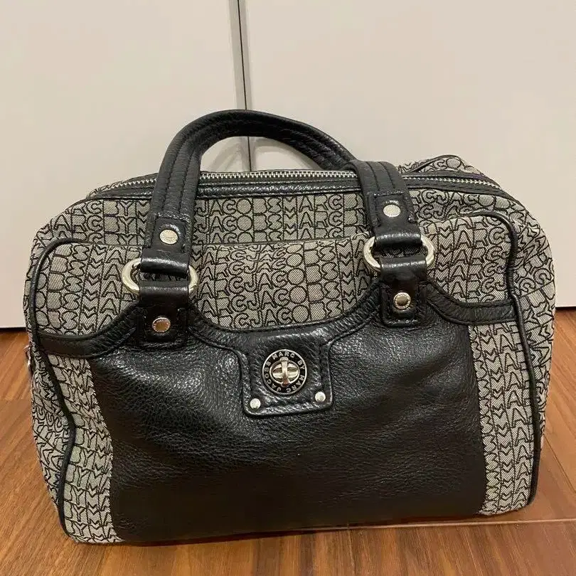 마크 제이콥스 보스턴 백 블랙과 그레이 로고 디자인