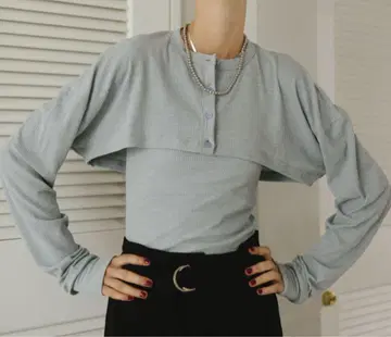 새상품*택 포함*미착용품 소재는 비침이 있는 니트 원단입니다 ☆ 기장도 짧은 편이라 원피스나 하이웨스트 하의에 잘 어울릴 것 같아요(*^^*) 기장:41 / 어깨 너비:48 / 팔 길이:35 컬러 - 네이비 계열