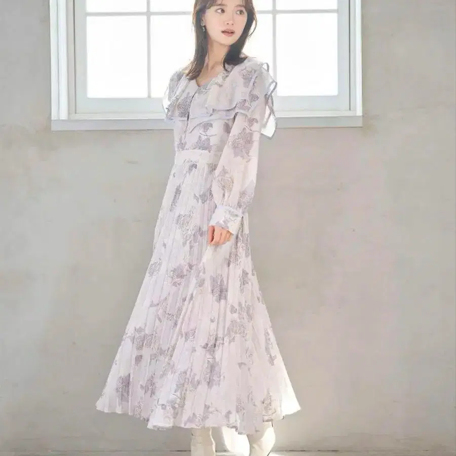 빅 컬러 뉘앙스 플라워 프린트 플리츠 원피스