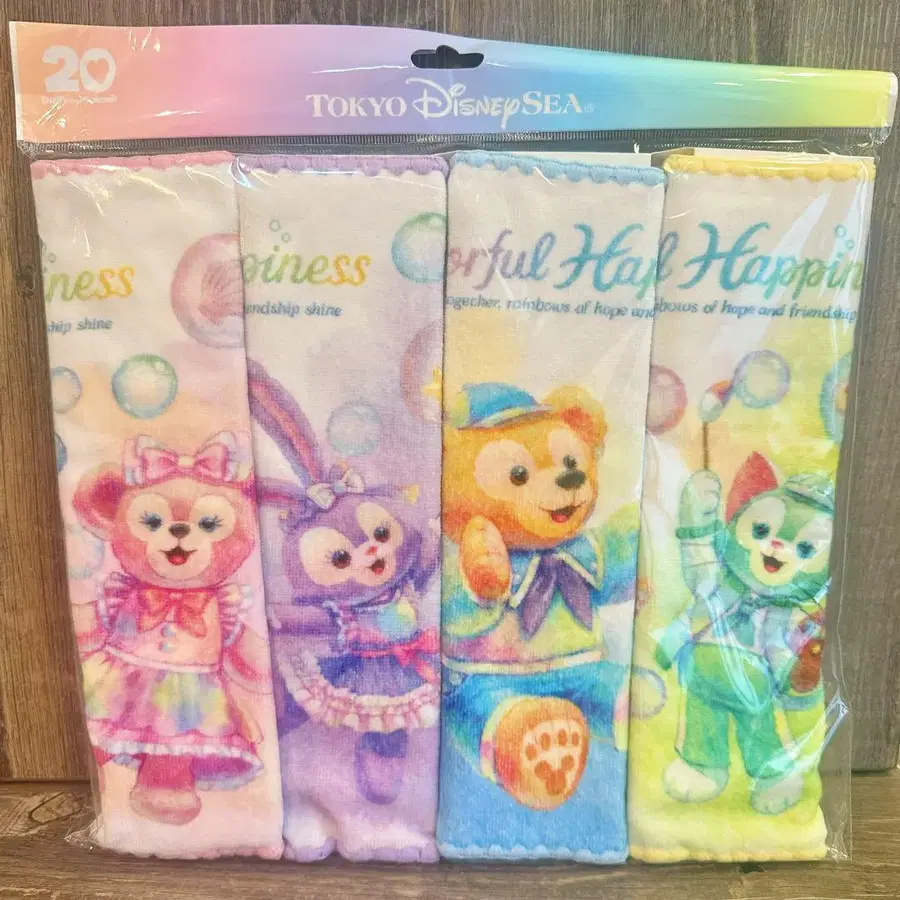 디즈니 씨 더피 & 프렌즈 20주년: 컬러풀 해피니스 미니 타월 세트 20주년 테마인 '더피 & 프렌즈만이 찾을 수 있는 행복'을 무지개와 샤봉으로 표현한 한정판 디자인 세트 내용: 더피, 셰리 메이 & 리나 벨, 젤라토니 & 쿠키 앤, 스텔라 루 & 올 멜이 디자인된 4장 미니 타월 세트 사이즈: 약 25cm x 약 25cm 방문해 주셔서 감사합니다.