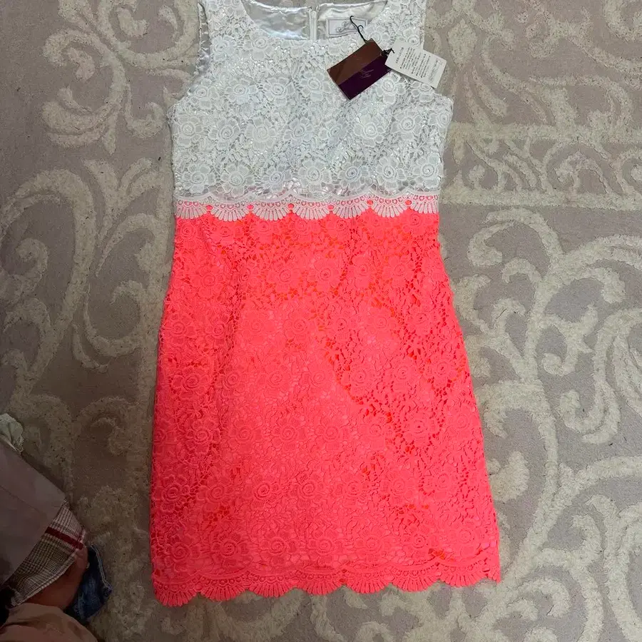 화이트와 오렌지 컬러의 레이스 디자인 슬리브리스 원피스, S 사이즈, 가벼운 소재감이 특징입니다. - 컬러: 화이트/오렌지 - 사이즈: S - 소재: 폴리에스테르 100%/레이스 95%/폴리우레탄 5 왠지 택에는 S로 표시되어 있지만 옷의 품질 표기는 M으로 기재되어 있습니다. S로 구입했습니다. 입어보지 않았기 때문에 사이즈감은 모르지만, 양해 부탁드립니다. 방문해 주셔서 감사합니다.
