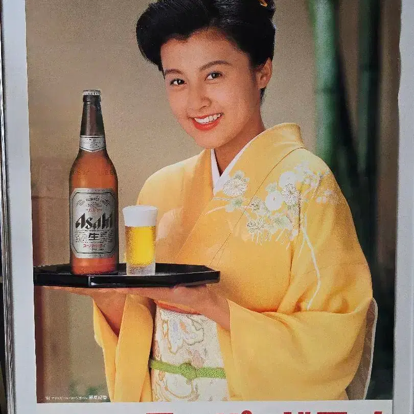 28년 전의 아사히 슈퍼 드라이 캠페인 걸 기모노를 입은 후지와라 노리카와 맥주의 콜라보레이션 사이즈: 음식점에 자주 붙어 있는 사이즈입니다. 48cm✕70cm 방문해 주셔서 감사합니다.