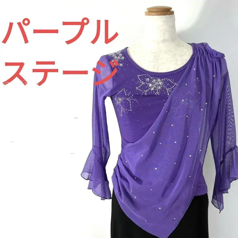 화려한 드레이프 반짝이는 스톤 퍼플 메쉬 슬리브 상의 (7부 소매)