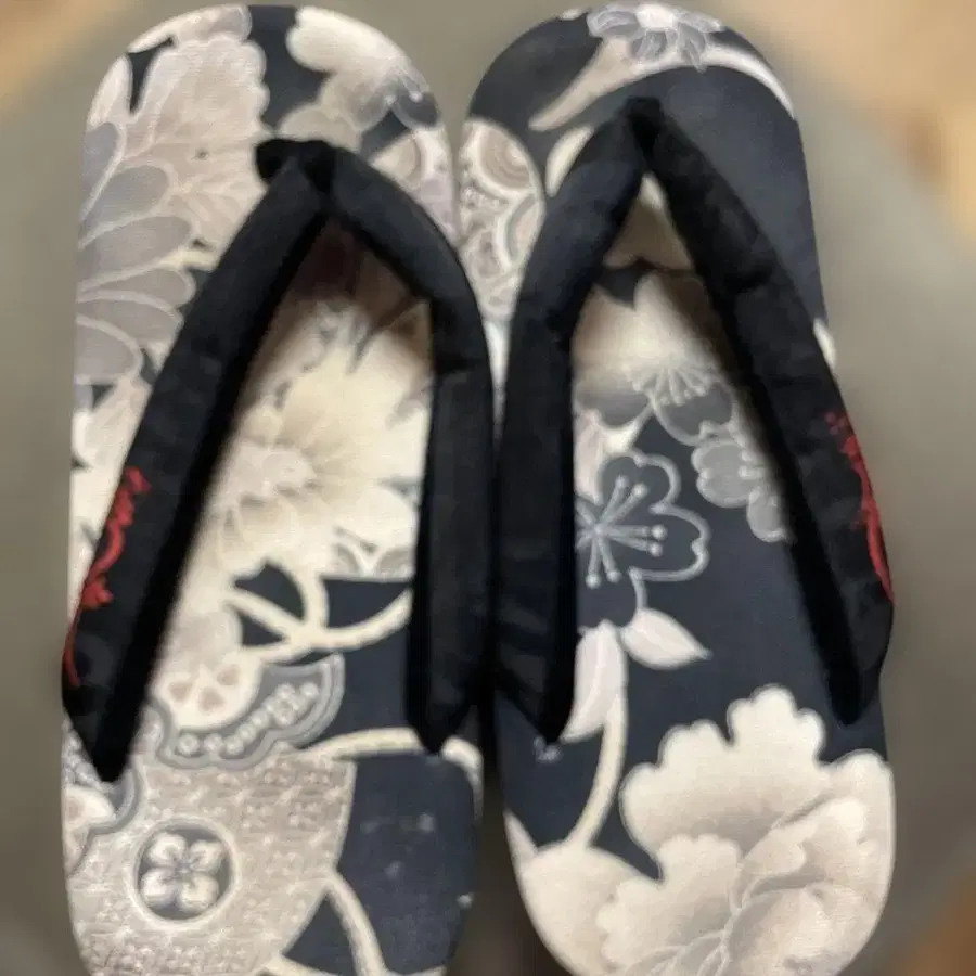 검은색과 흰색의 꽃무늬 디자인이 특징인 짚신으로, 빨간색 자수가 특징입니다. - 색상: 검은색과 흰색의 꽃무늬 - 디자인: 꽃무늬 스트랩 - 사이즈: M - 장식: 빨간색 자수 악센트 방문해 주셔서 감사합니다. 미사용이지만 자택에서 장기간 보관하던 상품입니다. 이 점 양해 후 검토 부탁드립니다.