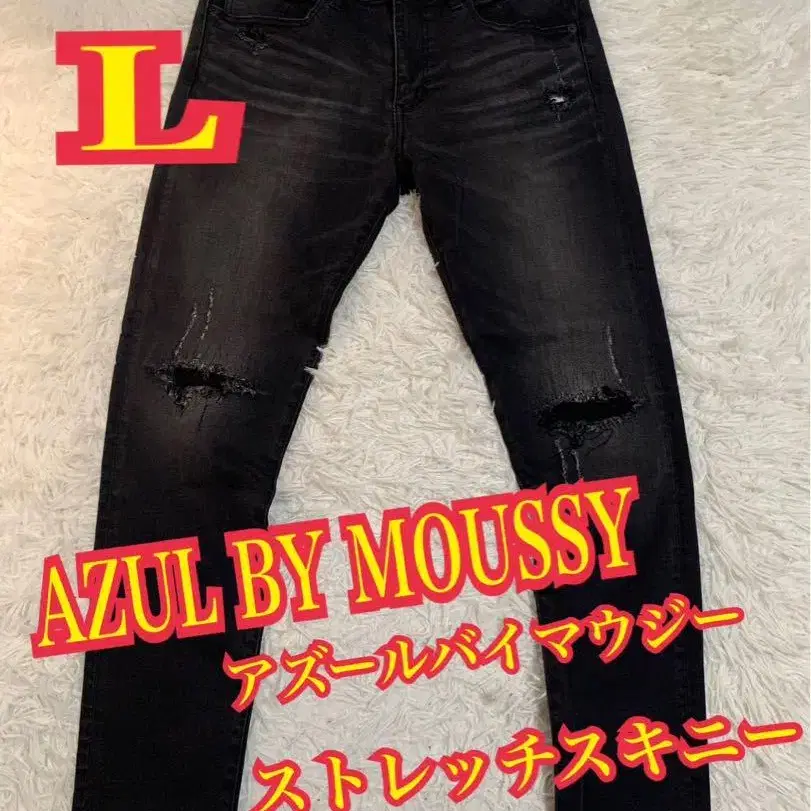 AZUL BY MOUSSY 스키니 청바지 스트레치 리페어 가공 블랙 L