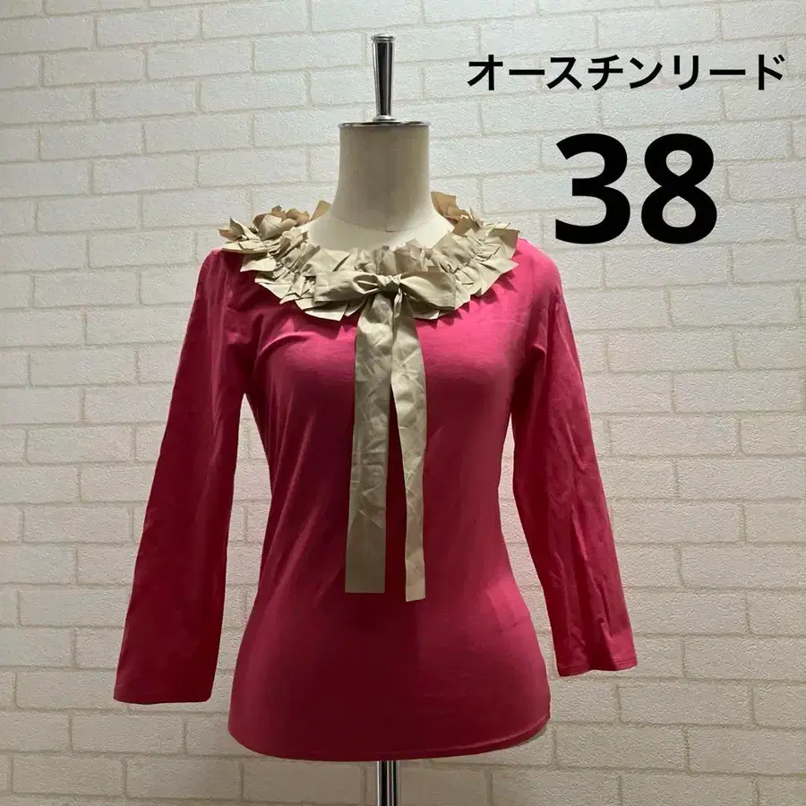 오스틴 리드 프릴 옷깃 핑크 7부 소매 티셔츠 티셔츠