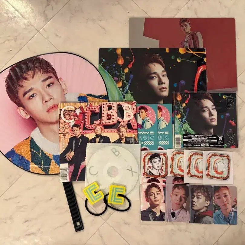 2017년경의 굿즈 묶음 판매(첸만)입니다. 구매한 것과 양도받은 것이 섞여 있으며, 개인 보관 상태이므로 예민하신 분은 삼가 주시기 바랍니다. 그룹명···EXO 멤버명···첸 아이템/종류···키링 아이템/종류···부채