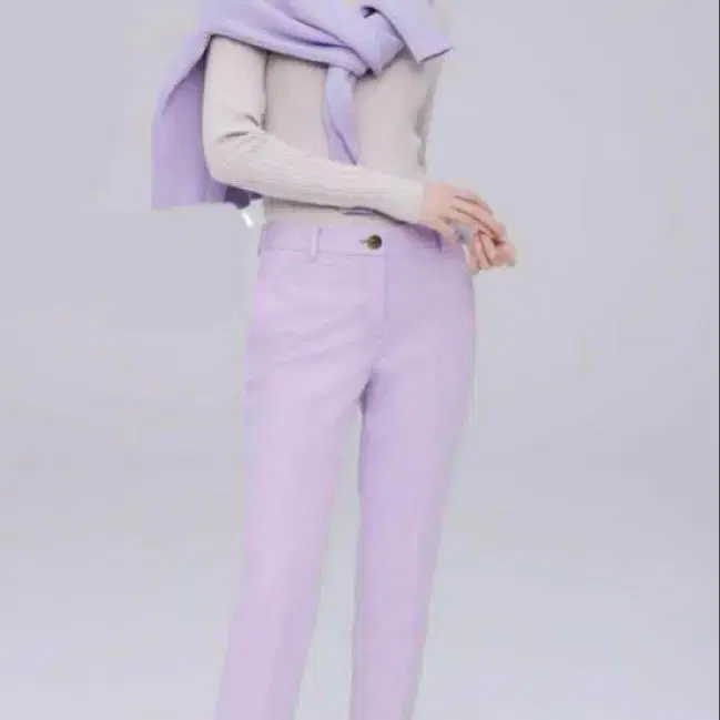 PLST 플라스테 PLUS STYLE 코튼 블렌드 스틱 팬츠 2023년 모델 사이즈 : XS 색상 : 라벤더 파스텔 퍼플 깔끔한 라벤더 컬러입니다. 소재 면 55% 폴리에스테르 35%    폴리우레탄 10 뒷면 허리 밴딩 처리되어 있습니다. 실루엣이 매우 깔끔하고 착용감도 좋습니다. 색상···퍼플 계열 오염, 찢김, 냄새 등···없음