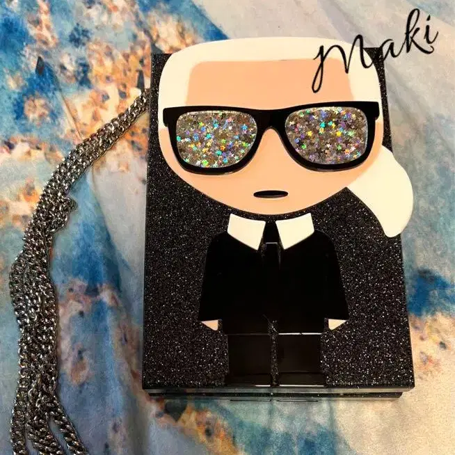 [ 미스터 화이트 블랙 댄디 ] 라고 외람되지만 마음속으로 그렇게 친근함을 담아 부르고 있는, 칼 라거펠트 님의 숄더 체인 백입니다. 이렇게 아이콘으로서 사랑스러운 디자이너님, 몇 년이고 마음을 빼앗긴 채 있습니다. 정식 명칭이 있다고 생각하지만, 제 검색 능력이 미치지 못하여, 알기 어려운 표현이 되어 버리는 점 송구스럽습니다만 - 부드러움과는 정반대를 가는 딱딱한 박스. 실용에는 부적합하다고 생각하여, 몇 년간 계속 장식해 두었습니다. 자신의 교통수단이 자동차 이동이 아니기 때문에 대중교통을 이용할 때 여기저기에 부딪혀 버릴 것 같아 공공물을 손상시킬 우려와, 백에도 흠집이 생겨 버리는 것을 두려워하여 [ 휴대 불가 ] 라는 결론에 이르렀을 뿐이므로 실용적으로 사용해 주실 분이 있을까 생각해서요. 또는 저처럼 인테리어로서 칼 라거펠트 굿즈 컬렉션의 일원으로서 맞이해 주시면 좋겠습니다. 체인은 탈부착 가능하므로 소량밖에 들어가지 않지만 메이크업 박스로서나, 가족이나 친구에게 받은 편지 등을 넣어 두는 보물 상자에도. 보물 상자 같은 외형이고요 - 눈에 띄는 흠집 등은 제 눈으로는 확인할 수 없지만, 구매한 지 몇 년이 지난 것으로 작은 흠집 등은 용서해 주시면 감사하겠습니다. 몇 년 전에 구매, 어느 정도의 기간 장식했는지 등은 기억나지 않으므로 양해 바랍니다. 상자는 집 어딘가에서 발견되면 그곳에 넣어 드리겠지만, 수납 가방은 분실했습니다. 세로 17.5cm 가로 12cm 폭 4.5cm 열림 9cm 체인 한쪽 측정으로 약 56cm