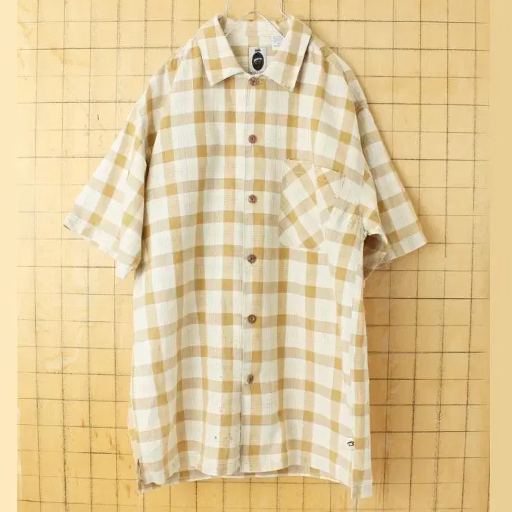 USA BUGLE BOY 반팔 체크 보카 라미 셔츠 베이지 M ss38