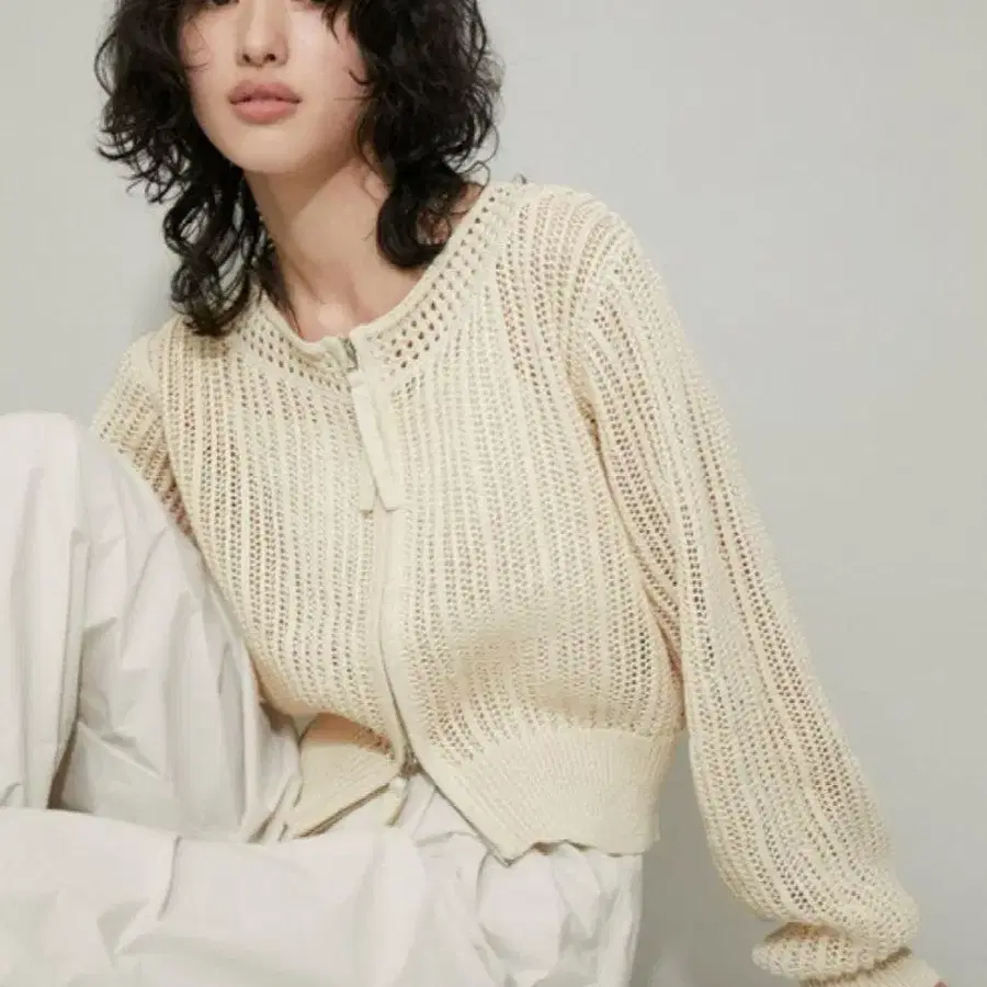 화이트 퍼(Fur) 느낌의 쇼트 가디건 니트