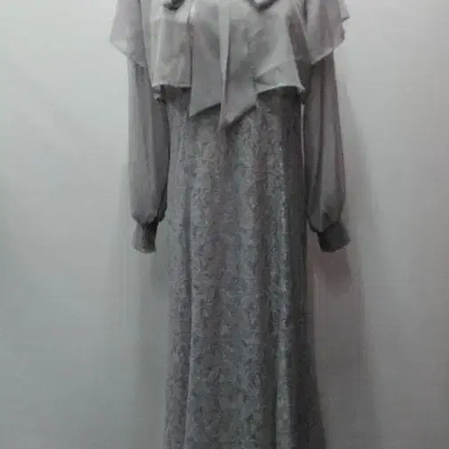 그레이 시스루 겉옷과 슬립 드레스 세트