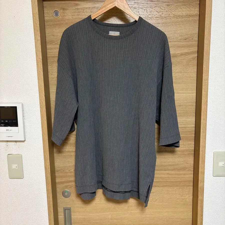 느긋한 박스 실루엣에 직선적인 5부 소매입니다.