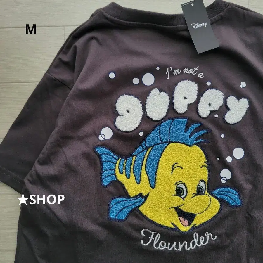 디즈니 인어공주 플랜더 사가라 자수 반팔 티셔츠 M