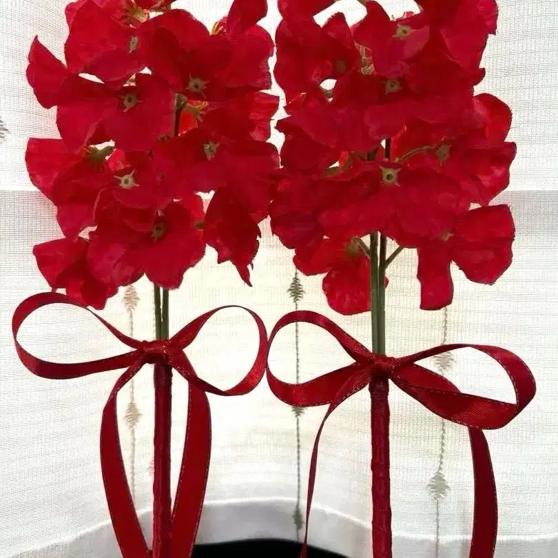 빨간색 스위트피 조화 핸드메이드 마츠다 세이코 씨 라이브 공연 참가를 위해 몇 개 만들어 보았습니다. 앞으로 참가 예정이신 분들 어떠신가요? 아마추어 제작 및 관리로 인해 색상 불균일 등이 있을 수 있습니다. 이해해 주시면 감사하겠습니다. 꽃의 수는 21송이입니다. 3송이로 1단을 완성했습니다. 풍성하게 마무리했습니다. 1단도 판매 중입니다. 높이 31cm, 가로 10cm 비닐을 씌워 상자에 넣어 보낼 예정입니다. #빨간색스위트피 #스위트피 #스위트피조화 #마츠다세이코 #크리스마스디너쇼 #라이브투어2026 #스위트피스틱