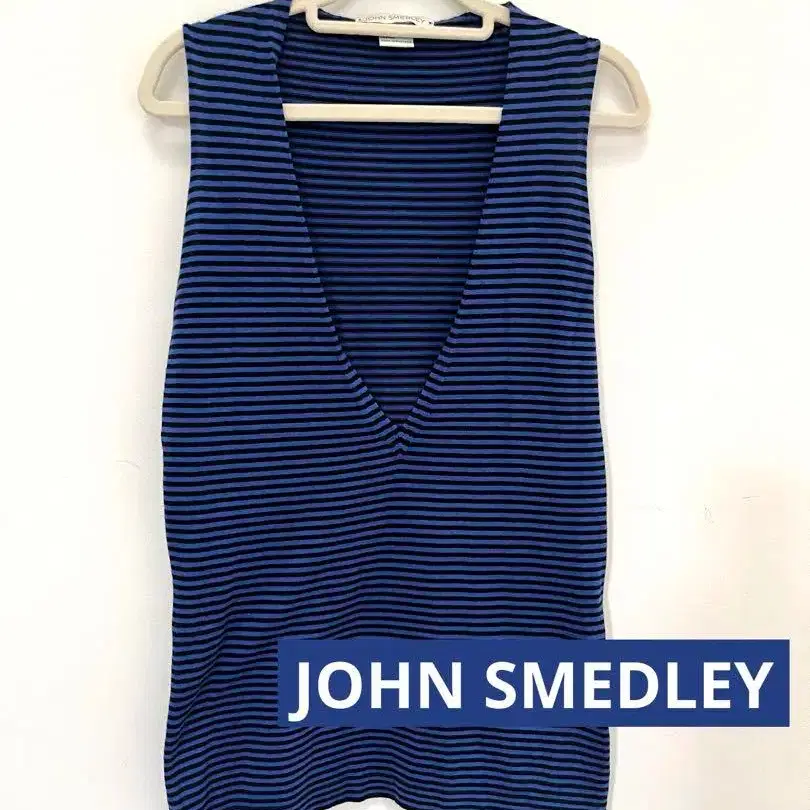 John Smedley 네이비 스트라이프 V넥 슬리브리스